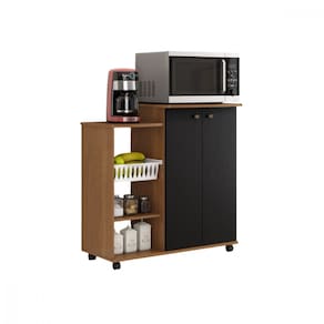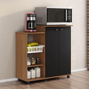 O Balcão Prático se adapta a todos os espaços, organizando e decorando ambientes como cozinha, copa, espaço gourmet e áreas de serviço. Tem espaço para acomodar micro-ondas e outro para bebedouro de água ou até mesmo uma cafeteira, duas portas com dobradiças metálicas, uma prateleira na parte interna outra na parte prateleira externa, fruteira plástica removível que facilita a higienização e quatro rodízios que proporcionam mobilidade do móvel!