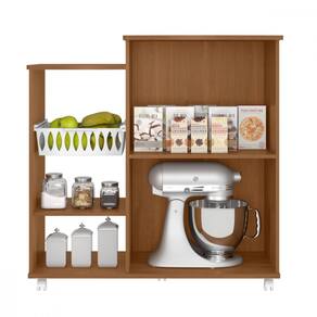Características: - Estrutura MDP e madeira reflorestada de 12 e 15 mm - Dobradiças metálicas - Fruteira plástica removível - Puxador de plástico - Possui 04 rodízios - Acabamento de pintura: Fosco - Suporte de peso total do produto: 47 kg - Suporte de peso do cesto: 5 kg - Suporte de peso das prateleiras: 3, 6 e 10 kg - Suporte de peso do tampo de 6 e 22 kg - Garantia de 03 meses