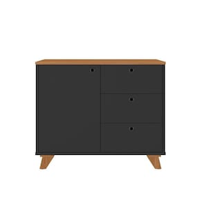 Balcão Retrô para Escritório1 Porta 3 Gavetas Lugano Freijó com preto