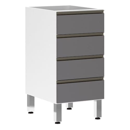 Balcão De Cozinha Sem Tampo 40cm 4 Gavetas Pérola Luciane Móveis Branco Polar Com Cinza Puro