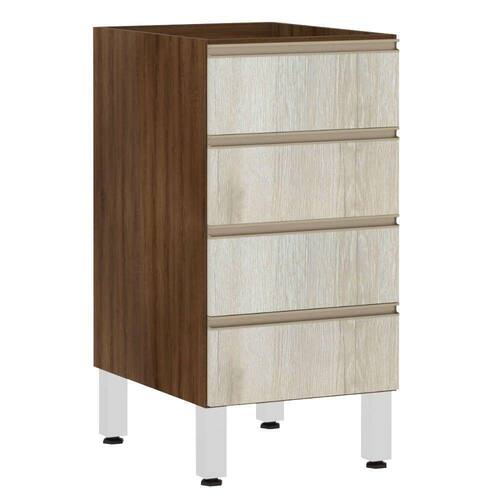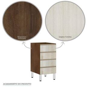 Balcão De Cozinha Sem Tampo 40cm 4 Gavetas Jade Luciane Móveis Nogueira Dourado Com Legno Crema
