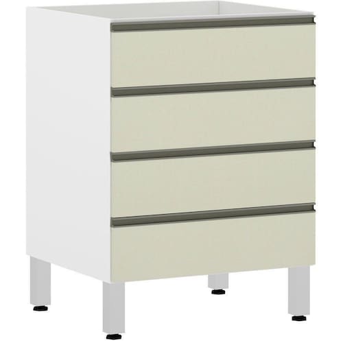Balcão De Cozinha Sem Tampo 60cm 4 Gavetas Pérola Luciane Móveis Branco Polar Com Kashmir