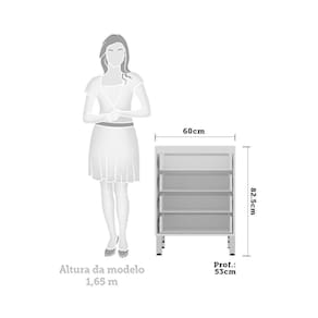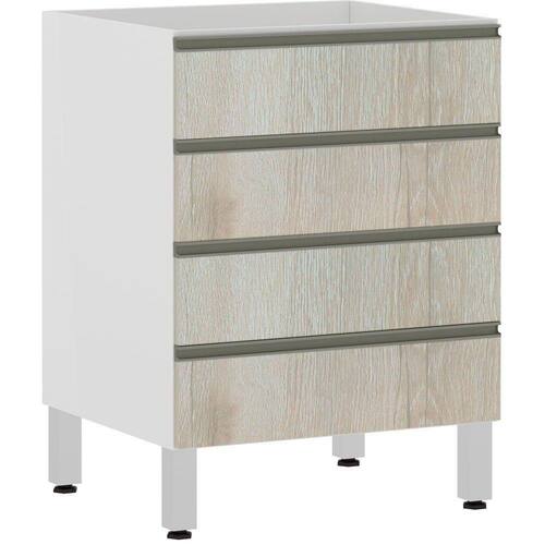 Balcão De Cozinha Sem Tampo 60cm 4 Gavetas Pérola Luciane Móveis Branco Polar Com Legno Crema