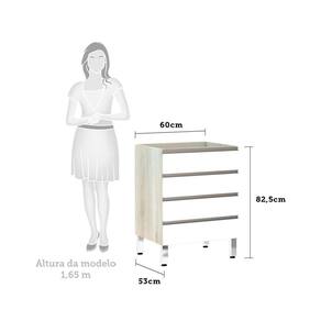 Balcão De Cozinha Sem Tampo 60cm 4 Gavetas Luci Luciane Móveis Legno Crema Com Branco Polar