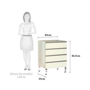 Balcão De Cozinha Sem Tampo 60cm 4 Gavetas Luci Luciane Móveis Legno Crema Com Kashmir