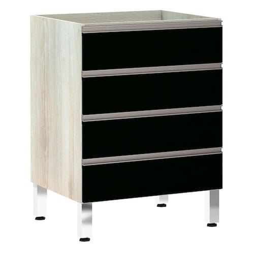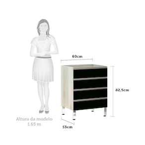 Balcão De Cozinha Sem Tampo 60cm 4 Gavetas Luci Luciane Móveis Legno Crema Com Preto Tx