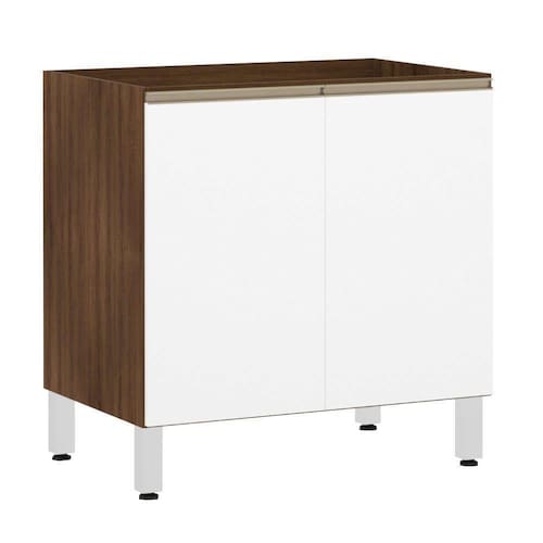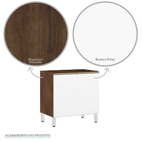 Balcão De Cozinha Sem Tampo 80cm 2 Portas Jade Luciane Móveis Nogueira Dourado Com Branco Polar Balcão Luciane Jade tudo que sua cozinha precisa. Amplo espaço para organização de seus utensilios, além de um designer inovador.