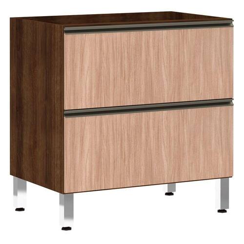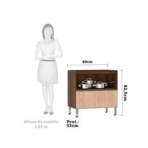 Balcão De Cozinha Sem Tampo 80cm Misto 1 Porta Basculante E 1 Gavetão Jade Luciane Móveis Nogueira Dourado Com Cumaru