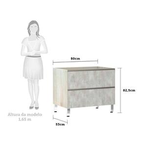 Balcão Sem Tampo 80cm Misto Basculante Luci Legno Crem e Concreto - Prata