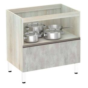 Balcão De Cozinha Sem Tampo 80cm Misto 1 Porta Basculante E 1 Gavetão Luci Luciane Móveis Legno Crema Com Concreto