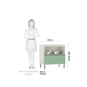 Balcão De Cozinha Sem Tampo 80cm Misto 1 Porta Basculante E 1 Gavetão Luci Luciane Móveis Legno Crema Com Verde Jade