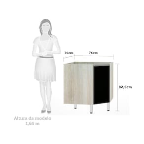 Balcão Sem Tampo Canto Diagonal Luciane Lis Legno Crem e Preto Tx
