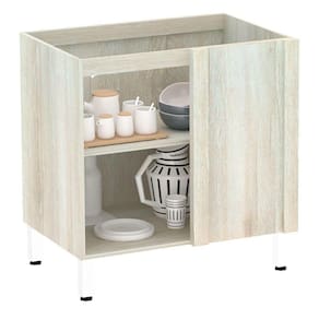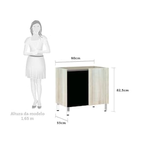 Balcão De Cozinha Sem Tampo Canto Reto Luciane 80cm 1 Porta Luci Luciane Móveis Legno Crema Com Preto Tx
