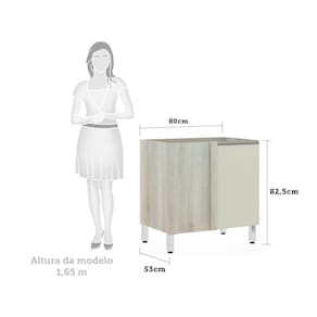 Balcão De Cozinha Sem Tampo De Canto Reto Luciane 80cm 1 Porta Lis Luciane Móveis Legno Crema Com Kashmir