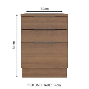 Este balcão de 60 cm da linha Stella da Madesa conta com três gavetas, sendo a última mais profunda. É perfeito para ampliar sua cozinha e organizar as louças e utensílios.