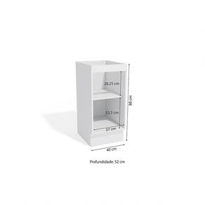 Cor: Branco | Matéria-prima: MDP | Peso suportado por cada prateleira: 7 kg | Puxadores: de Alumínio | Quantidade de portas: 1 | Quantidade de prateleiras: 1 | Sistema de montagem: Parafuso Philips | Tipo de porta: Bater