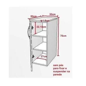 *Balcão Suspenso*Móveis resistente à agua através da tecnologia de colagem PUR; *Nossos produtos não são produzidos em série, são frutos da marcenaria moderna feitos um a um por profissionais experientes e com tecnologia de ponta;*Não produzimos móveis em pintura, aglomerado ou MDP, *Produzido 100% em MDF com laminado BP*Dobradiças com amortecimento;*Puxador em ABS*Medidas*Largura: 30 cm; *Altura: 76 cm; *Profundidade: 50 cm; *Espessura: 1,5 cm;*Peso: 20 Kg;*Alta durabilidade;*Fácil limpeza;*Acompanha buchas, parafusos e suportes para montagem;*Enviado desmontado com instruções de montagem;*Embalagem resistente;