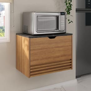 O Balcão Suspenso 60cm para Forno/Micro-ondas com 1 Porta e 1 Gaveta Multimóveis CR20345 é produzido em MDP de 15mm com pintura UV, proporcionando durabilidade e resistência. Com amplo espaço interno para acomodar utensílios de cozinha, possui 1 gaveta (suporta até 3kg) com corrediças metálicas, que oferecem leveza no manuseio, e 1 porta basculante com articulador, que garante segurança e praticidade na hora de organizar os itens. O tampo (suporta até 10kg) pode acomodar seu micro-ondas ou servir de apoio no preparo das refeições. Com montagem suspensa, otimiza o espaço e facilita a limpeza do ambiente. As opções de cores Amêndoa/Mármore Branco e Amêndoa/Mármore Lunar possuem acabamento em BP e pintura UV. Este balcão conta com um design moderno, graças ao puxador usinado e detalhe ripado, que elevam o requinte da cozinha, tornando-o uma escolha irresistível.