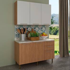 Conjunto de Cozinha 03 Peças composto por Armário Aéreo, Balcão para Pia e Tampo, todos com 120 cm de largura. Produzido em 100% MDP de 15 mm com acabamento em pintura BP (fosco) e UV (brilho). O tampo tem 25 mm de espessura e acabamento em pintura UV (semibrilho).