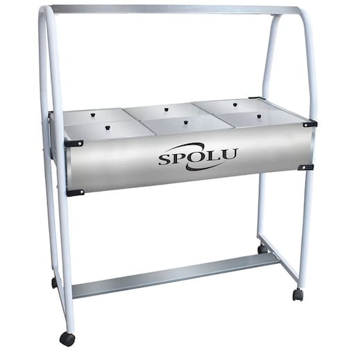 A função do Buffet térmico SPOLU é manter os alimentos servidos em suas cubas quentes enquanto em exposição. Possui cubas fabricadas em aço inox 201, tanque, tampas e moldura externa em aço inox 430 e estrutura de sustentação tubular. Sua resistência blindada é confeccionada em aço inox e controlada por um termostato com escala de 30ºC a 120ºC.