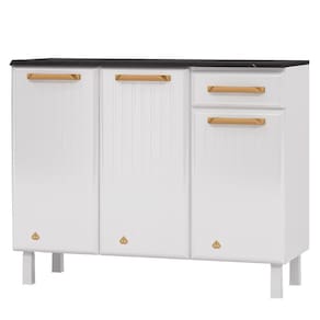 Especificações Técnicas: Marca: Telasul Modelo: Diamante Smart - 818134 Estrutura: Aço Quantidade de Portas: 03 Material das dobradiças: Aço Material das corrediças: Aço Tipo de corrediça: Convencional Material do Puxador: Plástico Quantidade de Gavetas: 01 Peso suportado por Gaveta: 3kg Quantidade de Prateleiras: 01 Espessura do Tampo: 25mm