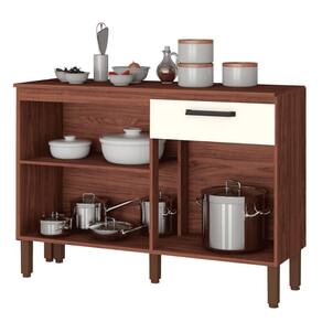 Com madeira reconstituída, que respeita o meio ambiente. Composto de três portas e uma gaveta, onde são utilizadas dobradiças e corrediças 100% metálicas, tampo que traz a praticidade de utilização de decorações, utensílios para cozinha e até mesmo eletrodomésticos. Os puxadores são ergonômicos em plástico resistente (poliestireno). Possui pés reguláveis em plástico resistente que garantem a estabilidade do produto. Acabamento com pintura UV.
