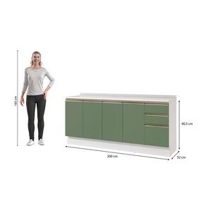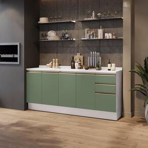 MDF / MDPTransforme sua cozinha com toda a beleza e praticidade do Conjunto CB1401 da Cozinha Celeste Kappesberg. Produzido 100% em MDF de 15mm, o que garante mais robustez, firmeza e qualidade, além de um acabamento perfeito. São 90,5cm de altura, 2m de largura e 52cm de profundidade. A caixaria é em pintura na cor branca e acabamento brilho, enquanto as frentes são na cor verde oliva, com acabamento fosco.