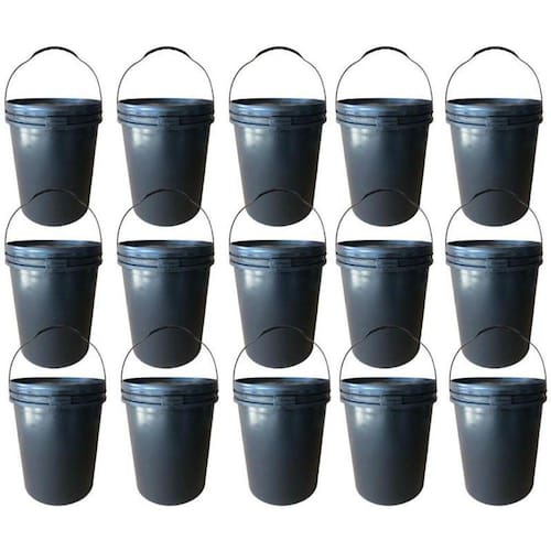 - 15 x Baldes Brancos de 16 L com Alça Plástica - 15 x Tampas Brancas com Lacre de Segurança