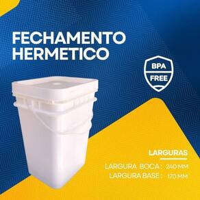 o balde de 20 litros retangular para alimento com tampa lacre é um recipiente projetado para armazenar alimentos em grandes quantidades. Ele é fabricado em plástico resistente, pp polipropileno de alta densidade, que é seguro para o contato com alimentos. A forma retangular do balde permite que ele seja empilhado facilmente, o que economiza espaço no armazenamento. O tamanho de 20 litros é adequado para armazenar alimentos em grande quantidade, tornando-o uma opção popular para uso comercial em restaurantes, padarias, indústrias alimentícias, entre outros. Seu volume real abaixo da tampa é de 20,57 litros podendo chegar em 22,85 litros sem tampa até a borda do balde. A tampa lacre é uma característica importante deste balde, pois mantém o conteúdo fresco e protegido de contaminantes externos. Possui um sistema de encaixe que proporciona um fechamento seguro e hermético, impedindo a entrada de ar, poeira, insetos e outros elementos que possam prejudicar a qualidade do alimento. Além disso, o balde de 20 litros retangular para alimento com tampa lacre de segurança é facilmente higienizável, podendo ser lavado com água e sabão e diversas vezes. Isso o torna uma opção econômica e sustentável para o armazenamento de alimentos. Alguns dos principais benefícios do balde 20 litros retangular para alimento com tampa lacre incluem: