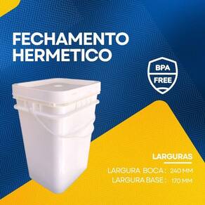 Balde retangular 20 litros com tampa lacre de segurança e alça plastica 100% bpa free - 04 peças