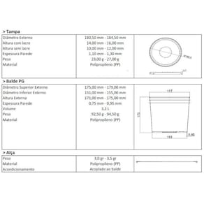 Balde 3,2l transparente com tampa preta e alça preta - kit 05 peças Linha alimenticia: indicado para ou residencial Nesta compra você vai receber: 05 x baldes 3.2 litros transparente com alça preta 05 x tampas pretas com lacre de vedação Capacidade e medidas técnicas Volume real: 3,2 litros Diâmetro superior: 180,50 mm a 184,50 mm Diâmetro inferior: 151,00 mm a 155,00 mm Altura externa: 171,00 mm a 175,00 mm Espessura das paredes: 0,75 mm a 0,95 mm Peso do corpo: 92,50 g a 94,50 g Peso da alça: 3,0 g a 3,5 g Material: polipropileno pp atóxico e livre de bpa Esses dados técnicos asseguram que o balde para alimentos da nastripack atende aos mais rigorosos padrões de qualidade. O balde 3,2 litros transparente com tampa preta da nastripack é a solução ideal para empresas e consumidores que buscam um recipiente versátil, resistente e seguro para armazenar alimentos, ingredientes ou produtos diversos. Fabricado em polipropileno pp de alta qualidade, este balde para alimentos atende às mais exigentes normas de higiene e segurança alimentar. Com um design moderno, transparente e funcional, ele oferece praticidade no manuseio e confiança no armazenamento, destacando-se como um dos produtos mais completos do portfólio nastripack. Design transparente para visualização rápida: O corpo do balde 3,2 litros transparente com tampa preta foi desenvolvido para permitir a visualização total do conteúdo interno. Isso facilita o controle de , o acompanhamento de validade de produtos e a identificação imediata dos alimentos armazenados. Essa característica é essencial para cozinhas industriais, restaurantes, lanchonetes, confeitarias e empresas que precisam de organização e agilidade. Tampa preta com fechamento seguro: A tampa preta possui encaixe preciso e tecnologia de lacre, garantindo vedação hermética e proteção contra vazamentos ou contaminações. O balde com tampa preta da nastripack é ideal para armazenar líquidos, cremes, massas ou produtos sólidos, mantendo frescor, sabor e textura dos alimentos. Além disso, a tampa preta facilita a diferenciação de lotes ou categorias de produtos. Alça preta resistente e ergonômica: Para facilitar o transporte, o balde 3,2 litros transparente com tampa preta acompanha alça preta em polipropileno altamente resistente. A alça é confortável, ergonômica e oferece firmeza ao carregar produtos pesados. Isso transforma o balde com alça preta em um aliado no dia a dia de negócios alimentícios, laboratórios, cosméticos ou indústrias químicas que necessitam de recipientes práticos. Material de alta qualidade: polipropileno pp O balde 3,2 litros transparente com tampa preta é fabricado em polipropileno pp , um dos materiais plásticos mais seguros para contato com alimentos. É resistente a impactos, temperaturas variadas e à ação de substâncias químicas leves. Além disso, é 100% reciclável, reforçando o compromisso da nastripack com a sustentabilidade. Aplicações versáteis: O balde para alimentos de 3,2 litros pode ser utilizado em uma ampla variedade de aplicações: Armazenamento de produtos alimentícios molhos, cremes, grãos, farináceos, pastas, temperos ; Setor cosmético e farmacêutico cremes, pomadas, suplementos ; Indústrias químicas e de limpeza produtos concentrados, amostras, compostos líquidos ; Uso doméstico organização de despensa, freezer ou geladeira ; Transportes de pequenos volumes de líquidos ou sólidos com segurança. Essa versatilidade torna o balde 3,2 litros transparente com tampa preta um item indispensável para quem procura praticidade e qualidade. Vantagens do balde 3,2 litros transparente com tampa preta Transparência para identificar o conteúdo sem abrir; Tampa preta com fechamento seguro e lacre; Alça preta ergonômica para transporte confortável; Material atóxico e livre de bpa; Design resistente, leve e empilhável; Fabricado pela nastripack, referência em qualidade e inovação. Diferenciais da nastripack