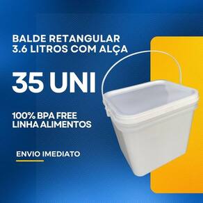 Balde retangular 3. 6 litros com tampa lacre de segurança 100% bpa free - 35 peças