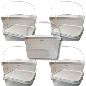 Balde retangular transparente 2.4 litros com tampa lacre de segurança 100% bpa free - 05 peças Comercializamos o balde vazio e sem impressão O titulo e o rótulo serve apenas como sugestão de usabilidade - embalagens com boa resistência em baixas e altas temperaturas e aprovadas para contato com alimentos. - balde plásticos rígidos desenvolvidos e fabricados especificamente para a indústria alimenticia, quimica e farmaceutica - as tampas tem ótimo fechamento e são de fácil colocação, seu desenho permite um empilhamento seguro Todos os processos são feitos em sintonia com as suas exigências, tanto de segurança, durabilidade e estética. Nesta compra voce vai receber: 05 x baldes retangulares transparente com alça plástica com capacidade de 2.4 litros 05 x tampas plastica branca retangulares com lacre de segurança Balde: Peso balde com alça 0,74g Altura externa sem tampa 110 mm Altura com tampa 114 mm Diâmetro interno superior 153,50 mm Diâmetro externo superior 157,40 mm Diâmetro anel externo 164,40 mm Diâmetro externo inferior 140 mm Espessura média lateral 0,75 mm Espessura média fundo 0,80 mm Tampa: Diâmetro externo 189 mm Altura 14 mm Espessura media parede 0,7 mm Peso 30 gramas Alça: Comprimento: 350 mm Espessura media parede: 0,85 mm O balde retangular transparente de 2.4 litros para alimento com tampa lacre é um recipiente projetado para armazenar alimentos em grandes quantidades. A transparência do balde permite visualizar facilmente o conteúdo interno, tornando mais fácil e rápido encontrar o que precisa. Ele é fabricado em plástico resistente, pp polipropileno de alta densidade, que é seguro para o contato com alimentos. A forma redonda do balde permite que ele seja empilhado facilmente, o que economiza espaço no armazenamento. O tamanho de 2.4 litros é adequado para armazenar alimentos em grande quantidade, tornando-o uma opção popular para uso comercial em restaurantes, padarias, indústrias alimentícias, entre outros. Seu volume real abaixo da tampa é de 2.4 litros podendo chegar em 2.5 litros sem tampa até a borda do balde. A tampa lacre é uma característica importante deste balde, pois mantém o conteúdo fresco e protegido de contaminantes externos. Possui um sistema de encaixe que proporciona um fechamento seguro e hermético, impedindo a entrada de ar, poeira, insetos e outros elementos que possam prejudicar a qualidade do alimento. Além disso, o balde de 2.4 litros retangular transparente possui uma tampa com lacre de segurança que é facilmente higienizável, podendo ser lavado com água e sabão e diversas vezes. Isso o torna uma opção econômica e sustentável para o armazenamento de alimentos. Alguns dos principais benefícios do balde 2.4 litros retangular transparente para alimento com tampa lacre incluem: - alta capacidade de armazenamento: com capacidade de 2.4 litros, este balde é ideal para armazenar grandes quantidades de alimentos. - proteção contra contaminação: a tampa com lacre de segurança é uma barreira eficaz contra insetos, poeira e outros contaminantes que possam prejudicar a qualidade do alimento. - facilidade de transporte: o balde é leve e fácil de transportar, permitindo que o alimento seja movido de um local para outro com facilidade. Em resumo, o balde transparente de 2.4 litros retangular para alimento com tampa lacre é um recipiente prático e seguro para o armazenamento de alimentos em grandes quantidades. Na sua cor transparente, permite visualizar facilmente o conteúdo interno, tornando mais fácil e rápido encontrar o que precisa. Não espere mais para garantir a durabilidade e a frescura dos seus alimentos adquira agora o balde transparente retangular 2.4l com tampa lacre e tenha mais praticidade e segurança
