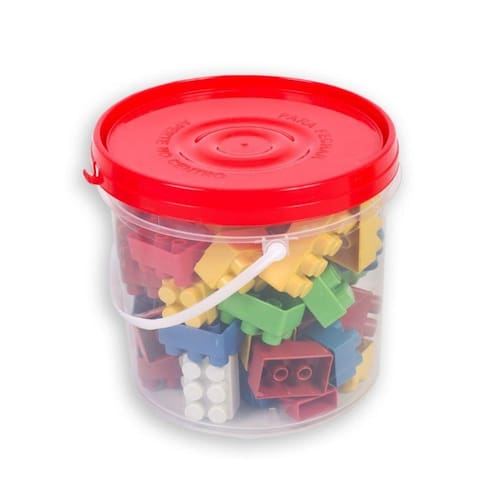 - Contém: 1 Balde de Plástico com Tampa 64 Peças Coloridas