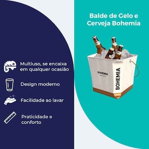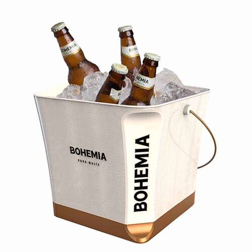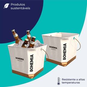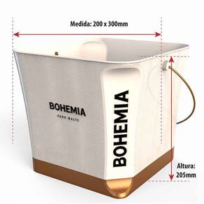O Balde Oficial da marca Bohemia é desenvolvido em PSAI, material de alta resistência a impactos, alta rigidez mantendo sua forma mesmo quando cheios e ainda assim são leves facilitando no manuseio. O Balde segue a design da marca Bohemia que garantem um toque e sofisticação tornam o produto funcional e decorativo.