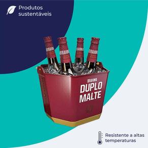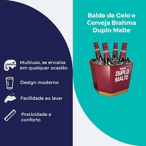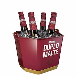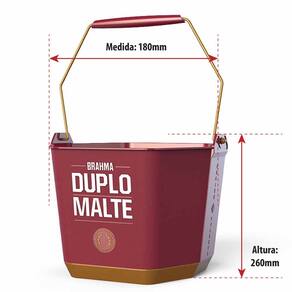O Balde segue a design da marca Brahma Duplo Malte, com a textura alto relevo que garantem um toque e sofisticação e o logo em destaque tornam o produto funcional e decorativo.
