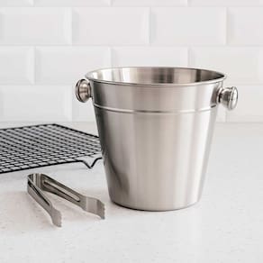 Balde de gelo e pegador produzidos em aço inoxidável, material resistente que não mancha, suporta variações de temperatura e garante durabilidade. Essencial para festas, reuniões e momentos de lazer, mantém as bebidas na temperatura certa com praticidade e elegância. Pegador de gelo que facilita o uso no dia a dia. Moderno, higiênico e fácil de limpar, pode ser levado à lava louças sem perder sua qualidade.