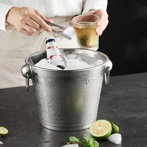 O balde de gelo de aço inoxidável com capacidade para aproximadamente 3 litros. A quantidade e a capacidade o tornam a escolha ideal para banquetes e reuniões, perfeito para preservar o sabor ideal de champanhe, vinho, cerveja e outras bebidas.