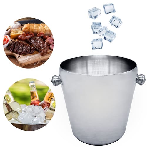 Por que este Balde de Gelo é Essencial? Capacidade Ideal (1200ml): Mantenha uma quantidade generosa de gelo sempre disponível, perfeita para festas, jantares ou um encontro casual, garantindo bebidas geladas por mais tempo. Balde de Gelo Portátil Inox 1.2L Ideal para Churrasco.
