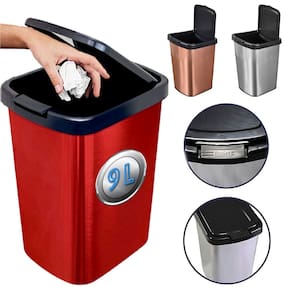 Balde De Lixo 9 Litros Lixeira Tampa Clique Fácil Adesivo Metálico Para Cozinha Banheiro