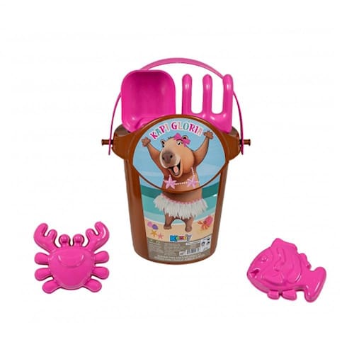 A brincadeira ficou ainda mais divertida com a Kapi Glória! Esse baldinho super estiloso vem acompanhado de pá, rastelo e forminhas para criar tudo o que a imaginação permitir!