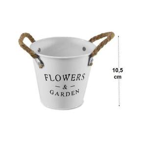 Perfeito para decoração proporcionando um ambiente muito mais bonito e agradável. Mini balde de metal com alça de corda com escrita Flowers & Garden.