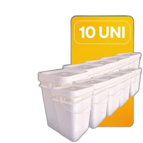 Balde retangular 20 litros com tampa lacre de segurança e alça plastica 100% bpa free - 10 peças Comercializamos o balde vazio - o titulo serve apenas como sugestão de usabilidade - embalagens com boa resistência em baixas e altas temperaturas e aprovadas para contato com alimentos. - potes plásticos rígidos desenvolvidos e fabricados especificamente para a indústria de sorvetes. - com o intuito de facilitar a limpeza, não possuem alça e suas linhas são suaves. - as tampas são de fácil colocação e seu desenho permite um empilhamento seguro na câmera fria. Todos os processos são feitos em sintonia com as suas exigências, tanto de segurança, durabilidade e estética. Nesta compra voce vai receber: 10 x baldes plastico branco retangular de 20 litros 05 x tampas plastica branca retangular com lacre de segurança Material: pp resistente de alta qualidade Volume nominal litros: 20 Volume total sem tampa até a borda litros: 22,85 Volume real abaixo da tampa litros: 20,57 Peso do balde: 606 gramas O balde de 20 litros retangular para alimento com tampa lacre é um recipiente projetado para armazenar alimentos em grandes quantidades. Ele é fabricado em plástico resistente, pp polipropileno de alta densidade, que é seguro para o contato com alimentos. A forma retangular do balde permite que ele seja empilhado facilmente, o que economiza espaço no armazenamento. O tamanho de 20 litros é adequado para armazenar alimentos em grande quantidade, tornando-o uma opção popular para uso comercial em restaurantes, padarias, indústrias alimentícias, entre outros. Seu volume real abaixo da tampa é de 20,57 litros podendo chegar em 22,85 litros sem tampa até a borda do balde. A tampa lacre é uma característica importante deste balde, pois mantém o conteúdo fresco e protegido de contaminantes externos. Possui um sistema de encaixe que proporciona um fechamento seguro e hermético, impedindo a entrada de ar, poeira, insetos e outros elementos que possam prejudicar a qualidade do alimento. Além disso, o balde de 20 litros retangular para alimento com tampa lacre de segurança é facilmente higienizável, podendo ser lavado com água e sabão e diversas vezes. Isso o torna uma opção econômica e sustentável para o armazenamento de alimentos. Alguns dos principais benefícios do balde 20 litros retangular para alimento com tampa lacre incluem: - alta capacidade de armazenamento: com capacidade de 20 litros, este balde é ideal para armazenar grandes quantidades de alimentos. - proteção contra contaminação: a tampa com lacre de segurança é uma barreira eficaz contra insetos, poeira e outros contaminantes que possam prejudicar a qualidade do alimento. - facilidade de transporte: o balde é leve e fácil de transportar, permitindo que o alimento seja movido de um local para outro com facilidade. Em resumo, o balde de 20 litros retangular para alimento com tampa lacre é um recipiente prático e seguro para o armazenamento de alimentos em grandes quantidades. Com sua forma retangular, tampa lacre e material resistente, ele é uma opção popular e econômica para uso comercial e industrial. Balde: Altura externa: 405,0 mm Externo max. Maior da borda inferior : 255,0 mm Externo max. Menor da borda inferior : 205,0 mm Externo max. Lado maior borda superior: 300,01 mm Externo max. Lado menor borda superior: 250,0 mm Tampa: Externo max. Maior da borda inferior: 299,74 mm Externo max. Menor da borda inferior: 249,74 mm Altura: 33,27 mm Espessura média da parede 1,00 mm Material resina 98% pp Material pigmento 2% master Peso da alça pp : 11 gramas