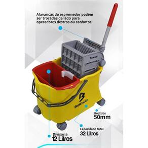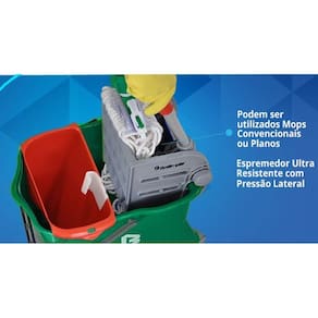 Este balde permite a utilização de Mops Convencionais ou Planos.