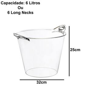 -Capacidade de 6 Litros: Com uma generosa capacidade de 6 litros, este balde de gelo oferece espaço suficiente para armazenar até 6 long necks, mantendo todas elas na temperatura ideal para serem apreciadas ao máximo.