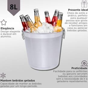 Apresentamos o Balde de Gelo 8 Litros, uma solução perfeita para armazenar e resfriar suas bebidas favoritas. Com ele, você terá sempre gelo à mão para manter suas bebidas geladas e refrescantes.