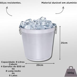 Com o nosso Balde de Gelo 8 Litros, você nunca mais vai passar por isso! Ele possui uma capacidade generosa de 8 litros, o que é suficiente para armazenar até 4 garrafas de 600 ml, 8 long necks ou 6 latas.
