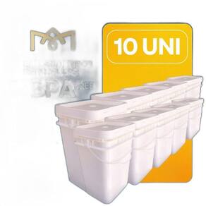 Balde retangular 20 litros com tampa lacre de segurança e alça plastica 100% bpa free - 10 peças Comercializamos o balde vazio - o titulo serve apenas como sugestão de usabilidade - embalagens com boa resistência em baixas e altas temperaturas e aprovadas para contato com alimentos. - potes plásticos rígidos desenvolvidos e fabricados especificamente para a indústria de sorvetes. - com o intuito de facilitar a limpeza, não possuem alça e suas linhas são suaves. - as tampas são de fácil colocação e seu desenho permite um empilhamento seguro na câmera fria. Todos os processos são feitos em sintonia com as suas exigências, tanto de segurança, durabilidade e estética. Nesta compra voce vai receber: 10 x baldes plastico branco retangular de 20 litros 05 x tampas plastica branca retangular com lacre de segurança Material: pp resistente de alta qualidade Volume nominal litros: 20 Volume total sem tampa até a borda litros: 22,85 Volume real abaixo da tampa litros: 20,57 Peso do balde: 606 gramas O balde de 20 litros retangular para alimento com tampa lacre é um recipiente projetado para armazenar alimentos em grandes quantidades. Ele é fabricado em plástico resistente, pp polipropileno de alta densidade, que é seguro para o contato com alimentos. A forma retangular do balde permite que ele seja empilhado facilmente, o que economiza espaço no armazenamento. O tamanho de 20 litros é adequado para armazenar alimentos em grande quantidade, tornando-o uma opção popular para uso comercial em restaurantes, padarias, indústrias alimentícias, entre outros. Seu volume real abaixo da tampa é de 20,57 litros podendo chegar em 22,85 litros sem tampa até a borda do balde. A tampa lacre é uma característica importante deste balde, pois mantém o conteúdo fresco e protegido de contaminantes externos. Possui um sistema de encaixe que proporciona um fechamento seguro e hermético, impedindo a entrada de ar, poeira, insetos e outros elementos que possam prejudicar a qualidade do alimento. Além disso, o balde de 20 litros retangular para alimento com tampa lacre de segurança é facilmente higienizável, podendo ser lavado com água e sabão e diversas vezes. Isso o torna uma opção econômica e sustentável para o armazenamento de alimentos. Alguns dos principais benefícios do balde 20 litros retangular para alimento com tampa lacre incluem: - alta capacidade de armazenamento: com capacidade de 20 litros, este balde é ideal para armazenar grandes quantidades de alimentos. - proteção contra contaminação: a tampa com lacre de segurança é uma barreira eficaz contra insetos, poeira e outros contaminantes que possam prejudicar a qualidade do alimento. - facilidade de transporte: o balde é leve e fácil de transportar, permitindo que o alimento seja movido de um local para outro com facilidade. Em resumo, o balde de 20 litros retangular para alimento com tampa lacre é um recipiente prático e seguro para o armazenamento de alimentos em grandes quantidades. Com sua forma retangular, tampa lacre e material resistente, ele é uma opção popular e econômica para uso comercial e industrial. Balde: Altura externa: 405,0 mm Externo max. Maior da borda inferior : 255,0 mm Externo max. Menor da borda inferior : 205,0 mm Externo max. Lado maior borda superior: 300,01 mm Externo max. Lado menor borda superior: 250,0 mm Tampa: Externo max. Maior da borda inferior: 299,74 mm Externo max. Menor da borda inferior: 249,74 mm Altura: 33,27 mm Espessura média da parede 1,00 mm Material resina 98% pp Material pigmento 2% master Peso da alça pp : 11 gramas