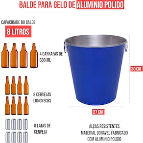 Com o nosso Balde de Gelo 8 Litros, você nunca mais vai passar por isso! Ele possui uma capacidade generosa de 8 litros, o que é suficiente para armazenar até 4 garrafas de 600 ml, 8 long necks ou 6 latas.