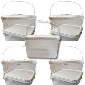 Balde retangular transparente 2. 4 litros com tampa lacre de segurança 100% bpa free - 05 peças